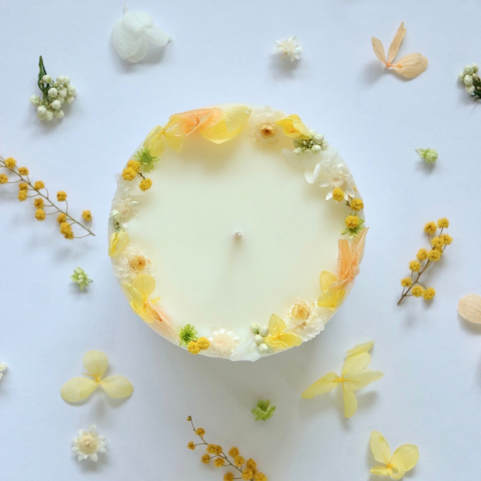 yellow/ orangeを基調としたフルールキャンドル(お花キャンドル)は、プレゼントにもおすすめです。